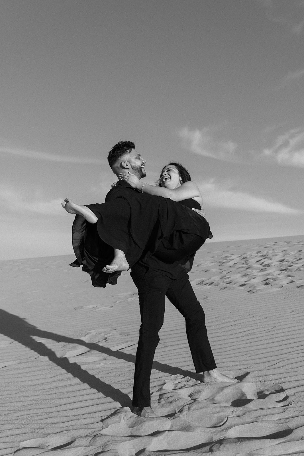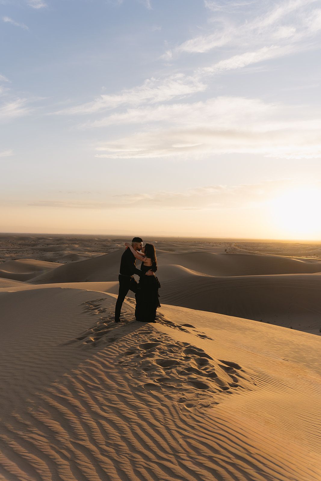 Imperial Sand Dunes is easily one of our top picks for engagement photos in California. Just outside of Glamis, this breathtaking location offers a one-of-a-kind desert backdrop with endless rolling dunes, soft textures, and a golden glow that feels straight out of a movie. What we love most about this spot is how vast and untouched it feels. Every direction gives us clean, natural lines and dramatic depth, perfect for both wide cinematic shots and intimate, close-up moments. It truly feels like stepping into another world, making the entire session an experience, not just a photoshoot. If you are envisioning engagement photos that feel adventurous, timeless, and effortlessly beautiful, Imperial Sand Dunes never disappoints.